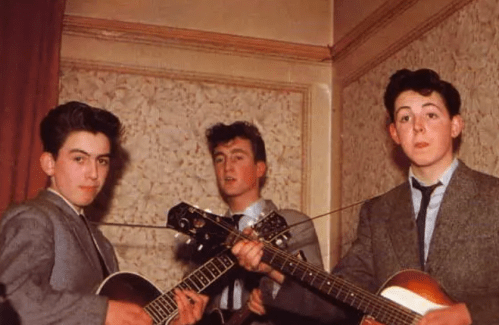 Paul quería a George en el grupo (era mucho mejor que él como guitarra solista), e intentó convencer a sus compañeros. Lennon se negó, había aceptado a McCartney que tenía dos años menos, pero no quería a un chavalín de 14 años. Paul se puso pesado e insistió en que John oyera a George. El descarado Harrison llegó ante el chavalón de 17 años, sacó la guitarra y tocó «Raunchy« (ni McCartney, ni Lennon hubieran sabido tocar por aquel entonces ni tres notas de esa canción). Paul miró sonriente a George y luego a John. El líder Lennon, con el ceño fruncido, se dio la vuelta y dijo: «vale chaval, estás dentro».